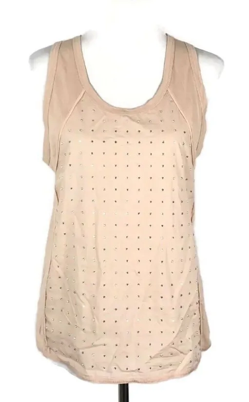 J Crew Womens Rhinestone Tank Top Size M Embellished Jewel Cami Blouse Black Label Item Laid Flat... Show more