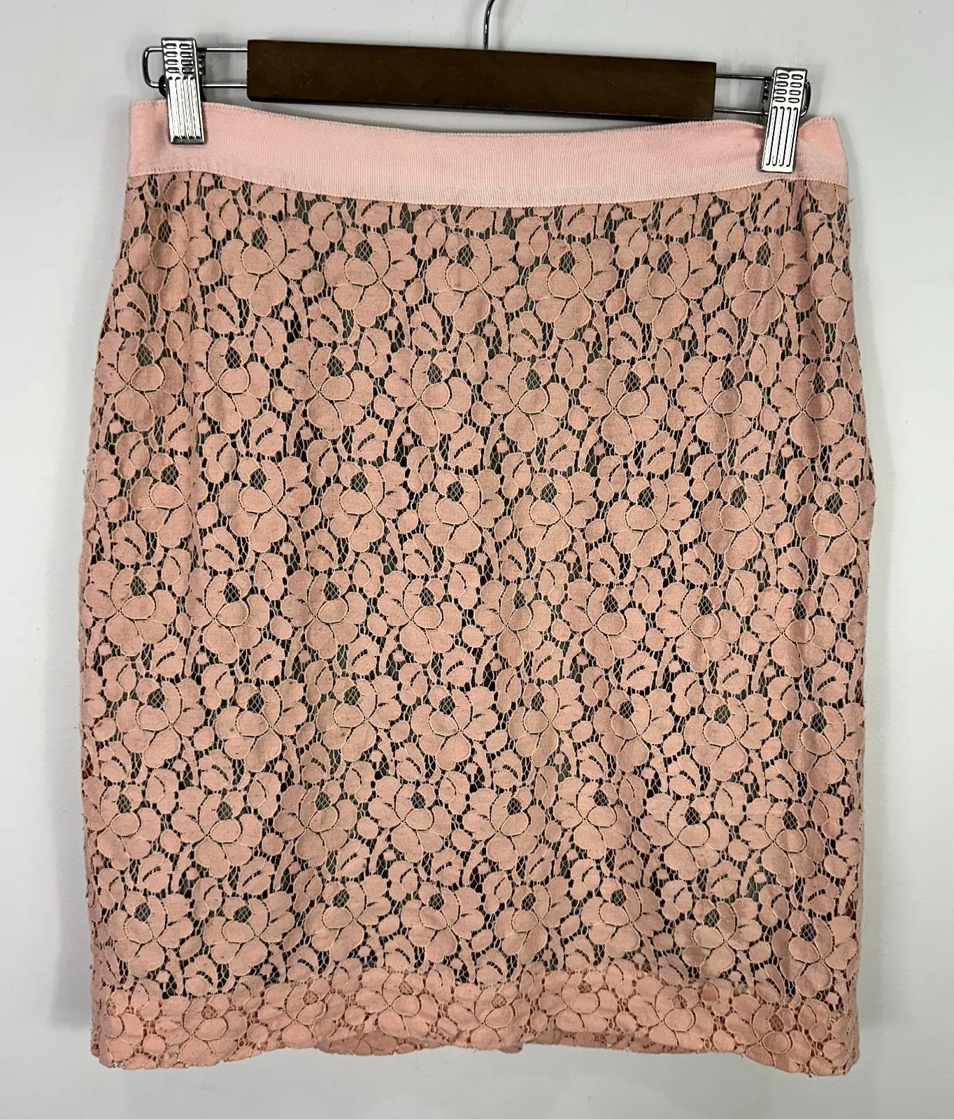 Brand: J.Crew Style: The Pencil Skirt Size: 8 Color: Blush pink Pattern: Floral lace overlay Fi... Show more