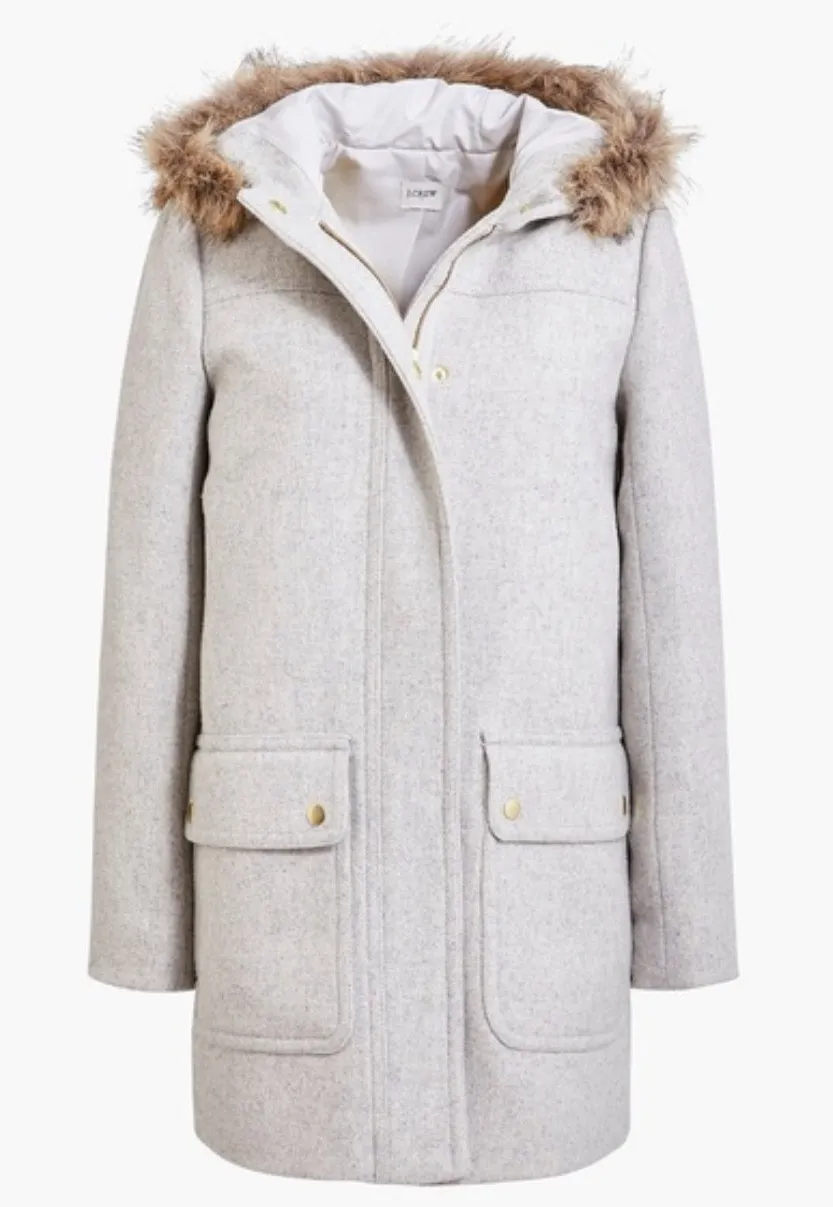 J.Crew Vail Parka Faux Fur Hooded Winter Coat Gray Size 4 Excellent condition - no stains or flaws... Show more