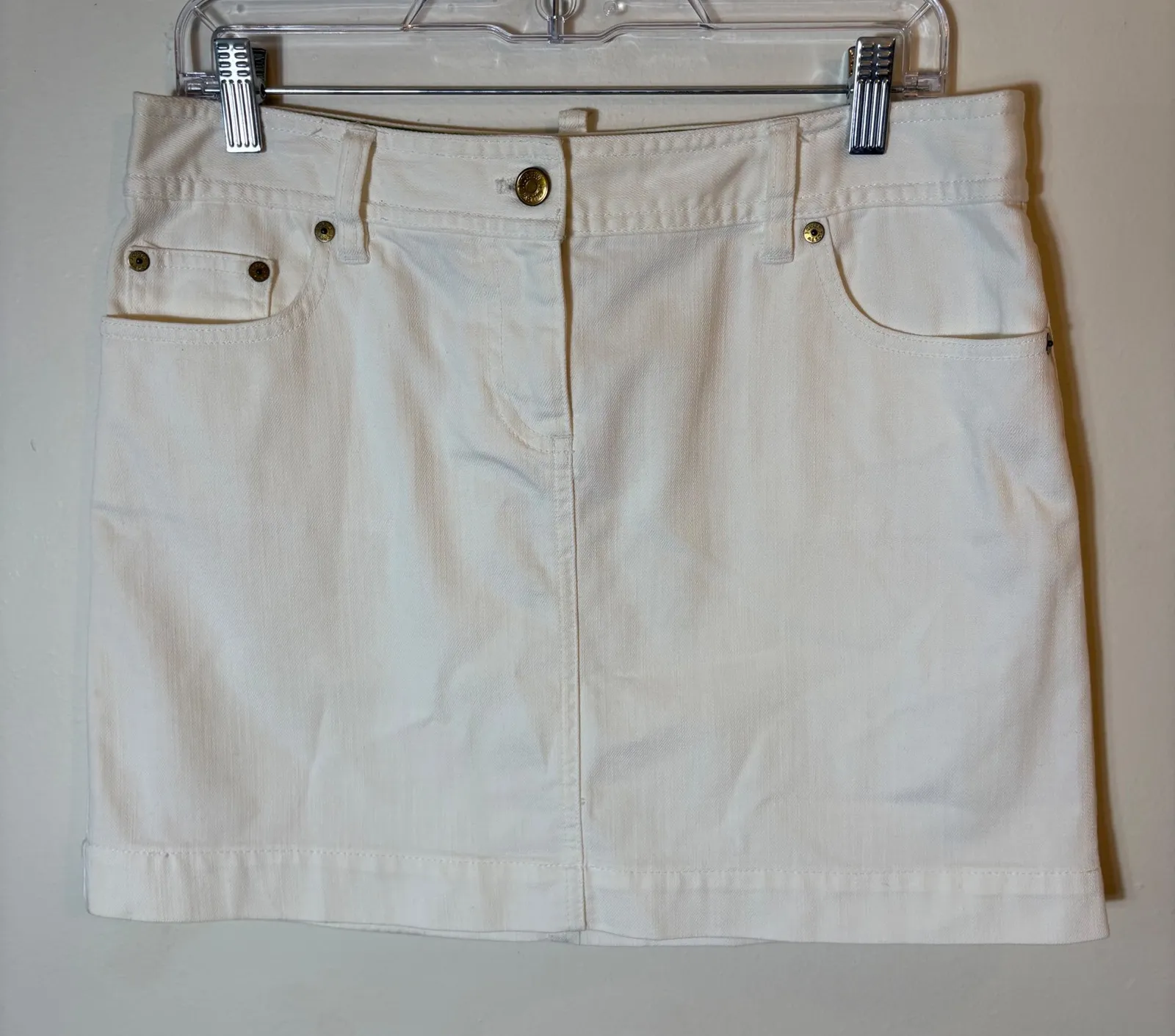 Keywords: J.Crew, White Denim Skirt, Mini Skirt, Womens Skirt, Size 31, Brass Button, Front Pockets, Casual Skirt, Summer Skirt, Denim Mini Skirt, Cotton Skirt, Classic Skirt