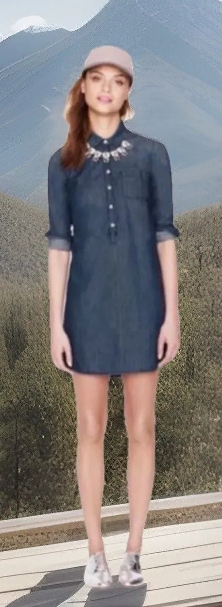 The J.Crew Western Blue Chambray Denim Mini Shirt Dress is a stylish and versatile piece perfect for... Show more