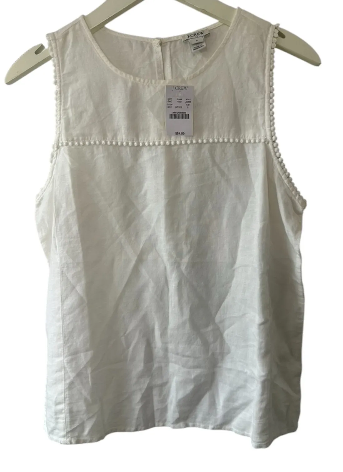 J.Crew White Cotton-Linen Shell w/ Pom Pom Trim Sleeveless Top Women's 2 NEW - $28 New With Tags - From Kim