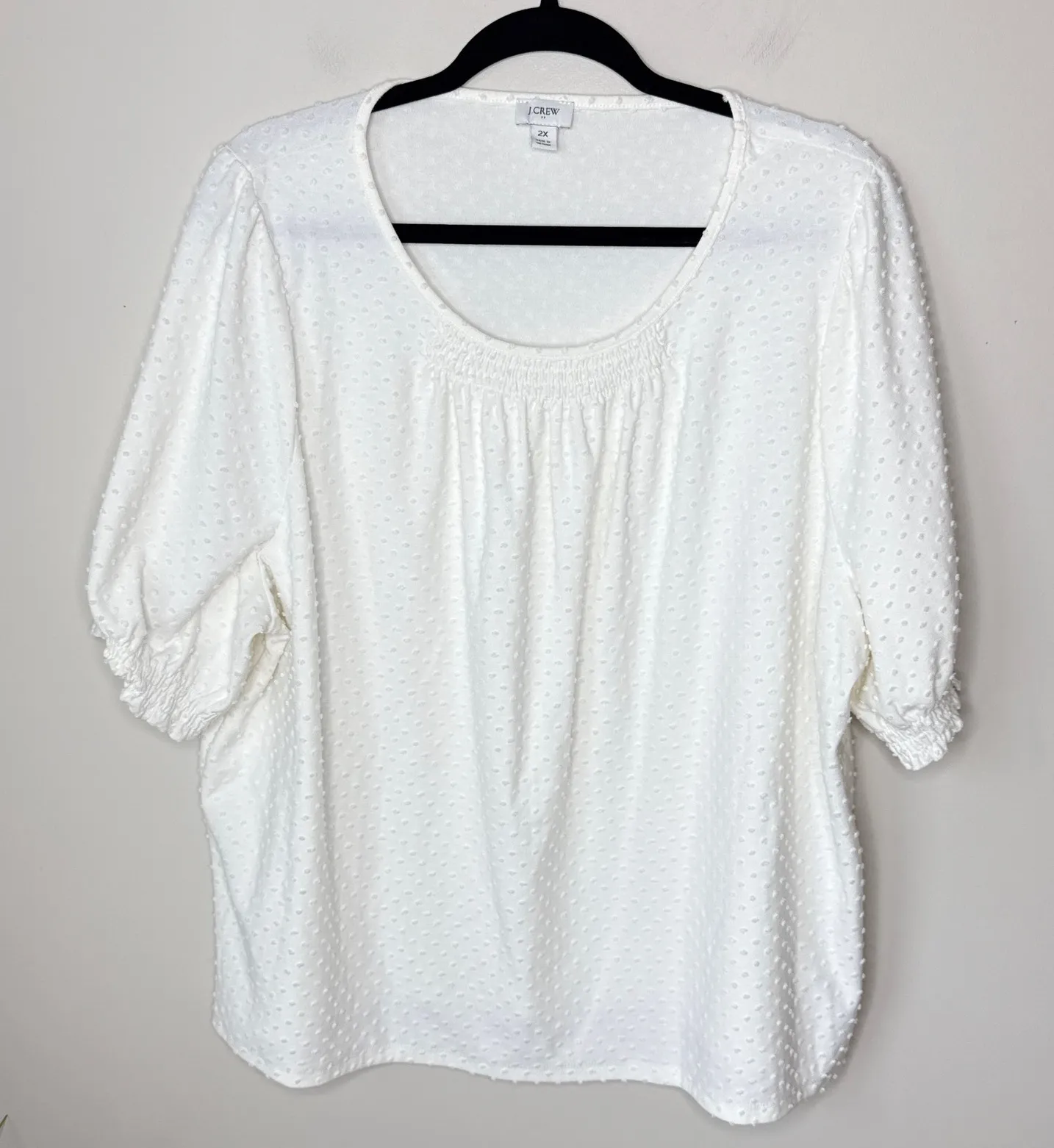 J.Crew Women's Swiss Dot Short Sleeve Blouse Size 2X * Round Neck * elastic cuff short sleeves * sm... Show more