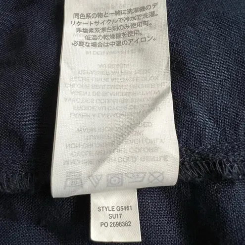 Elegant dark blue top with subtle green detailing. Ideal for versatile styling. A peasant-y top with... Show more