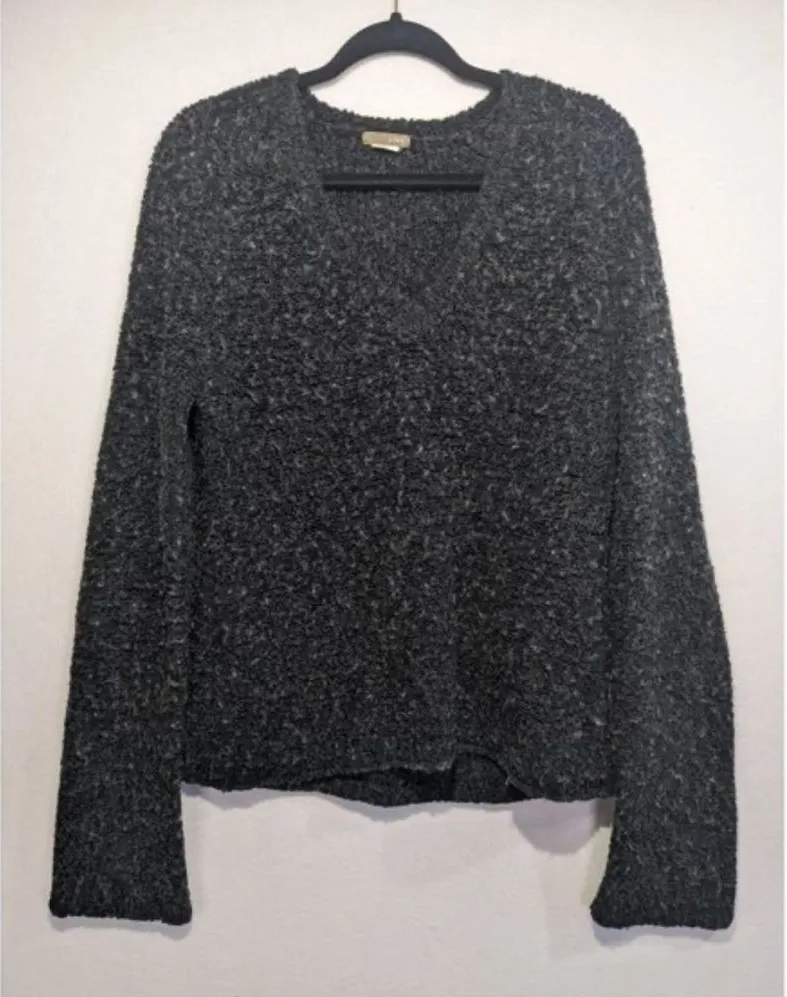J.Crew Womens Knit Charcoal Grey Size Large Vneck Sweater Flared Arms Cozy Great Condition. No Stai... Show more