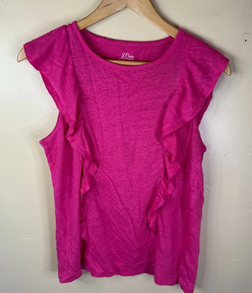 J.Crew Womens Ruffled Hot Pink Linen Cap Sleeve Size Small Top Travel Summer Great Condition. No S... Show more