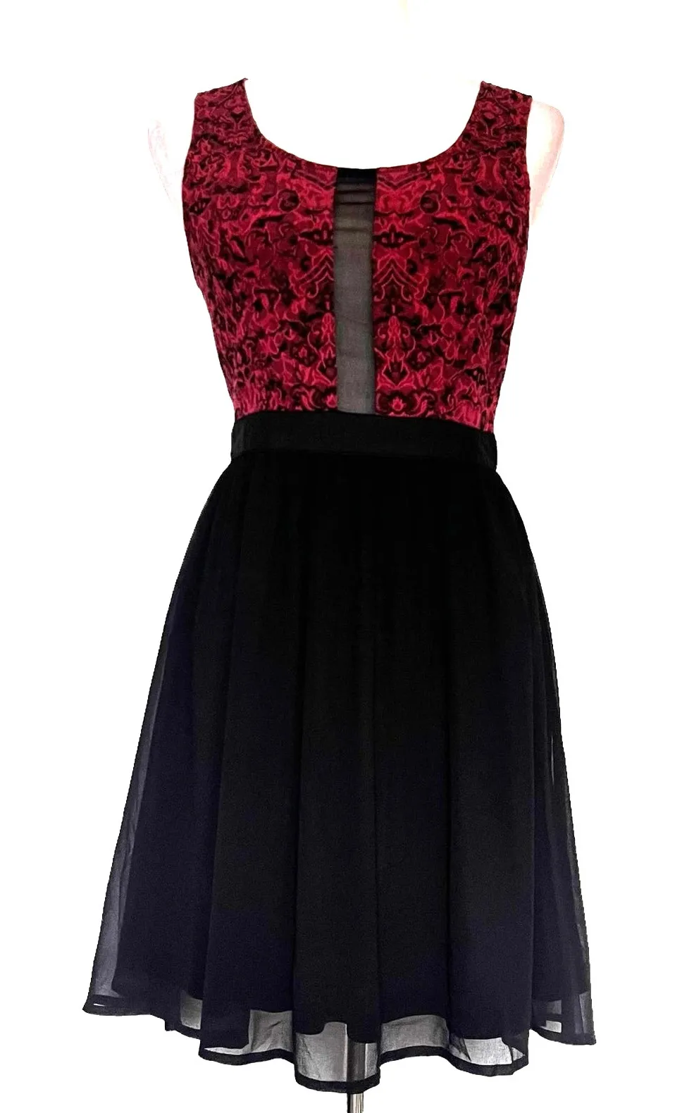 Burgundy Jealous Tomato Party Fit n Flare Dress Lace Sheer Cutout Holiday Whimsigoth Exposed gold zipper in back, sheer mesh down middle and over skirt Good pre-owned condition, zipper sticks a bit at the waist Size Medium 100% Polyester Contrast b 100% Polyester Contrast 50% Cotton 45% Poly 5% Spandex Approximate measurements in inches Pit to pit: 16 Shoulder to Waist: 15 Waist (laid flat):13.5 Waist to hem: 19 Goth, Fairy, Dark, Whimsigoth, Lace, Sheer, Cutout, Burgundy, Regency, Burnout, Holiday, Altfashion, Cocktail, Meshpanel, RomanticGoth, Eveningwear, SemiFormal, HOCO, Romantic, Date Night, Holiday, Mesh Insert, Burgundy