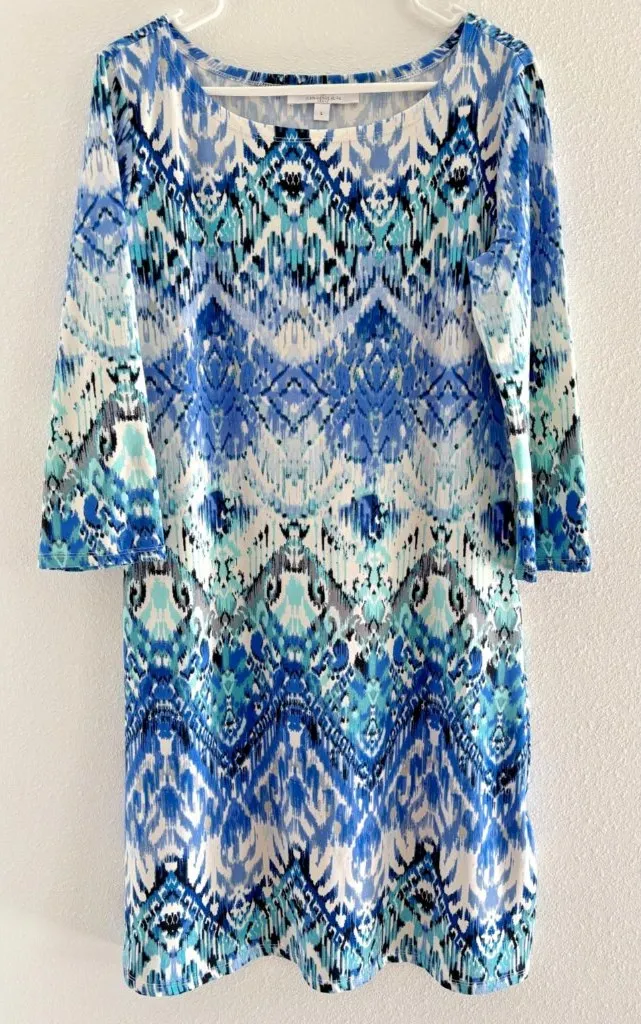 Jean Pierre Klifa Womens Size Large‎ Shift Dress Blue Floral Print Watercolor - $45 - From Nothing New