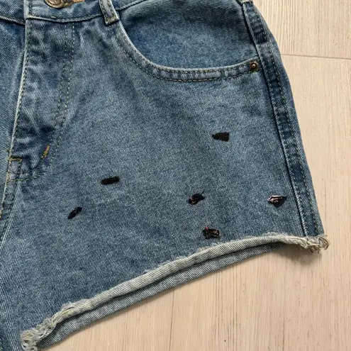 Upgrade your summer wardrobe with these barely-worn high-waisted jean shorts. Featuring intricate em... Show more