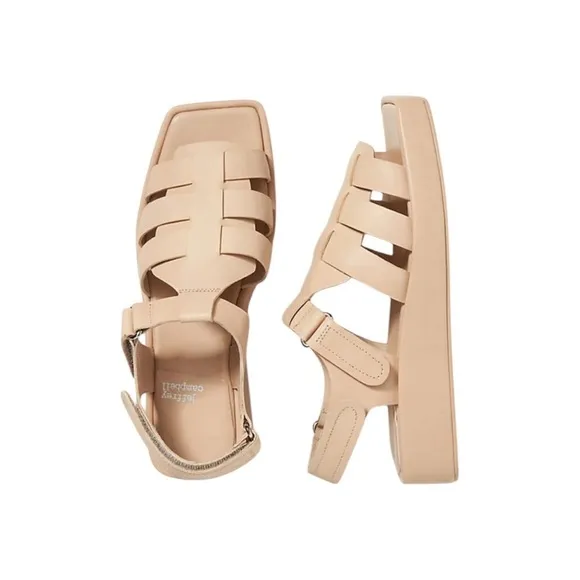JEFFREY CAMPBELL Anthropologie Leather Poisson Fisherman Sandals Beige Size 9.5 Excellent pre owned... Show more