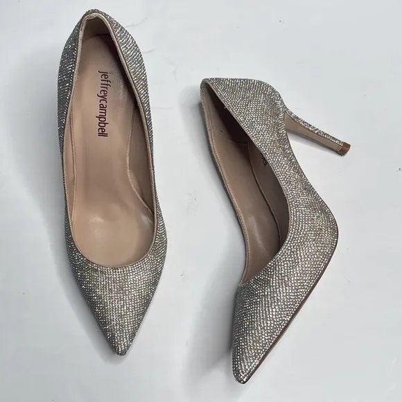 Jeffery Campbell Pelara Rhinestone Silver Gold Heels Stilettos Shoes S-220 Sz 7 Absolutely gorgeous... Show more