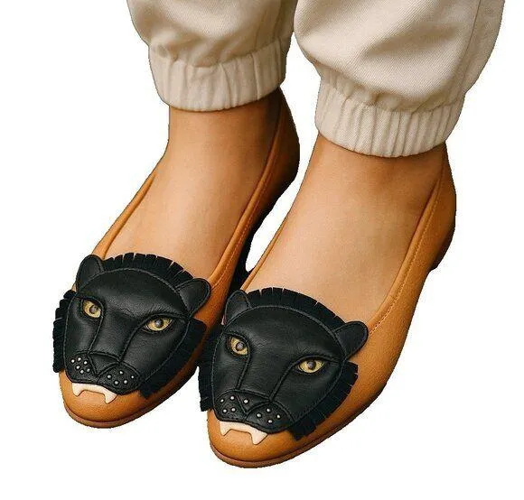 Jeffrey Campbell Leon Lion Flats Womens 6.5 Leather Cat Novelty Slip On Shoes Good gently pre-owned... Show more