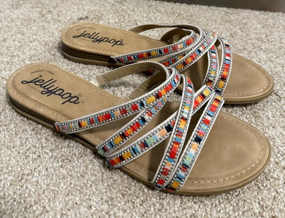 Jellypop Flat Slide Slip On Sandal Rhinestone Colorful Detail Casual Vacation 11 Pink - $13 - From Abbey