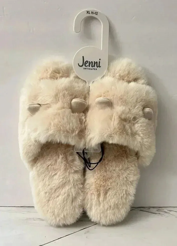 Jenni Faux Fur Slippers Size XL 11-12 Ivory Beige Open Toe With Ear Details Tan - $12 New With Tags - From Jenny