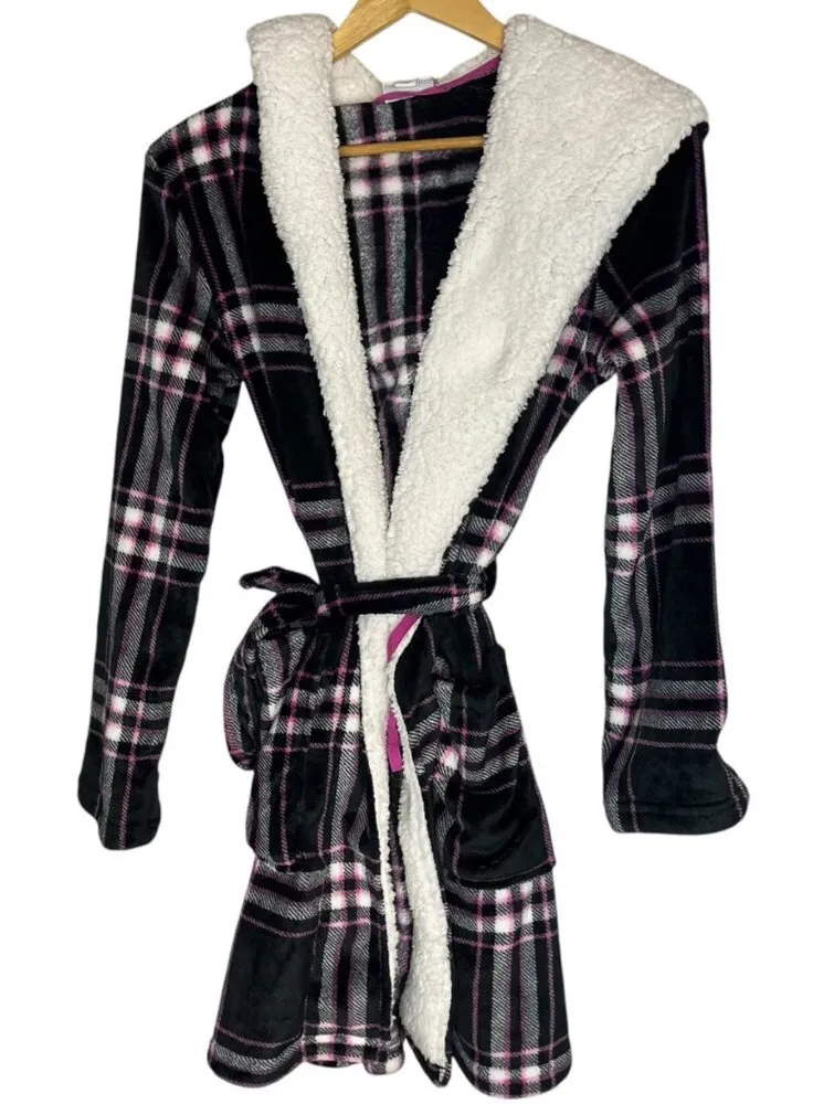 Jenni Intimates Women's XS/S Hooded Plaid Fleece Robe Multicolor Comfy Lounge New with tags Size: XS/S Pit to pit: 18 Length: 34 Ships fast! Ships from a smoke free pet friendly home