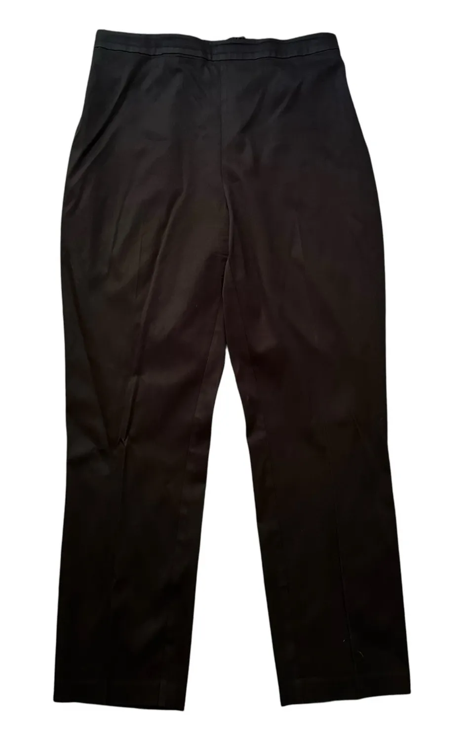 Good condition but there's areas on the back where the stitching is coming out see - see last two pics Brand - Jenni Kayne Size - large Material - tencel, cotton, spandex - black - straight leg slim fit - satin like material - elastic, stretchy waist - ankle length - dress pants, professional, business casual Approximate lay flat measurements: - inseam - 25.5 in - waist - 15 in - rise - 12 in - leg opening - 7 in Please see pictures for detailed measurements I consider reasonable offers! Check out my closet for additional bundle discounts