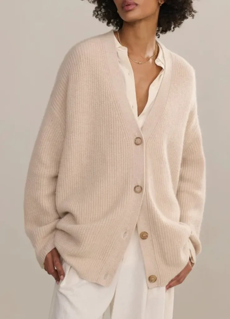 Details: Condition: new with tags Size: Small Color: Oatmeal Material: 100% Cashmere Oversized fit. It is suggested taking a size or two down for less volume. Hits high thigh. Lightweight, super-soft knit. Faux-horn buttons. Luke 2:11