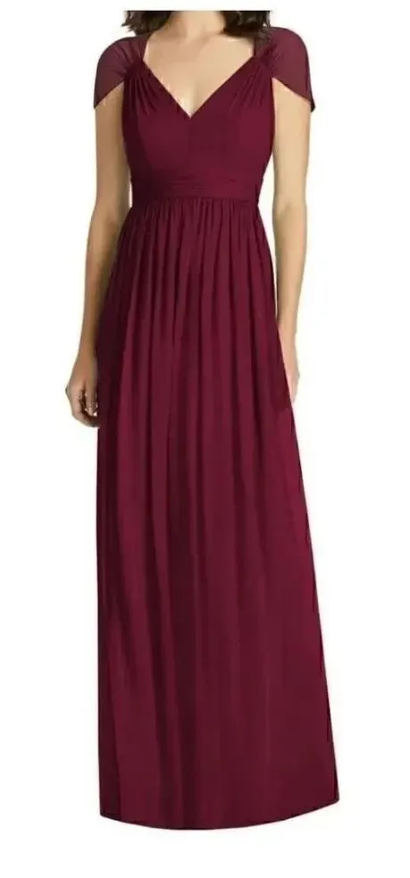 Jenny Packham Cabernet Cap Sleeve Chiffon Bridesmaid Dress Fit & Flare Cut Out Back Womens Pink Empire Waist Maxi Length Flowy Gown Elegant Bohemian Special Occassion SZ 12 #1654 New with tag. Measurements available in photos. Professional Seller. Ship Same / Next Day. Offers are welcome. Smoke Free and Free Home.