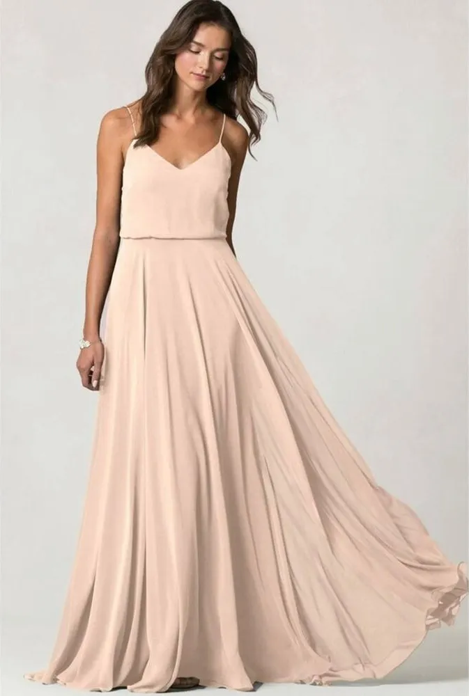 Great condition. Size 0 The Inesse chiffon bridesmaid dress has long been one of our best-selling dresses. She has a V-neck, subtle blouson waist, and a romantic circle skirt. The delicate spaghetti straps create a V at center back. This universally flattering style is chic, effortless, and a dream to wear