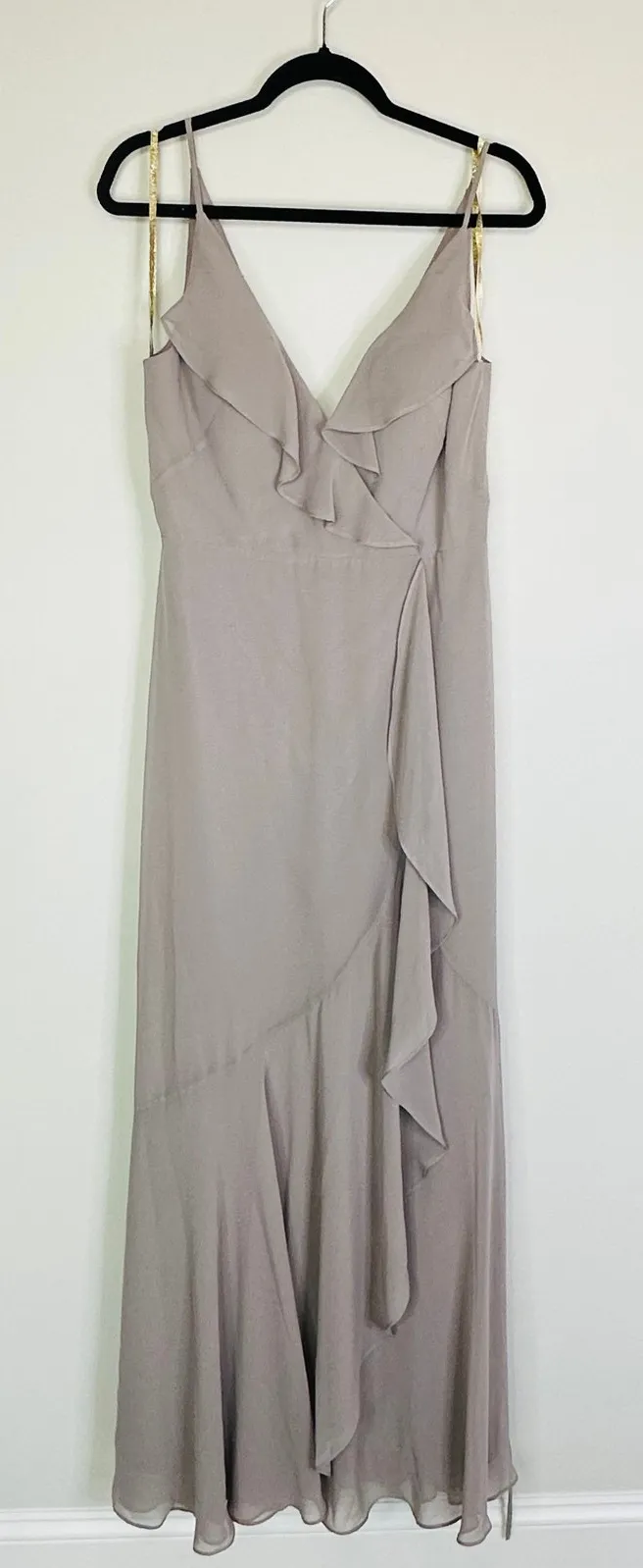 Jenny Yoo Ensley Bridesmaid dress gown in Opal Gray luxe chiffon. Size 10. In great pre-owned condit... Show more