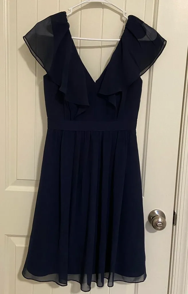 Jenny Yoo women’s navy blue Isabel chiffon fit and flare dress Zips up the back size 0 In good used... Show more