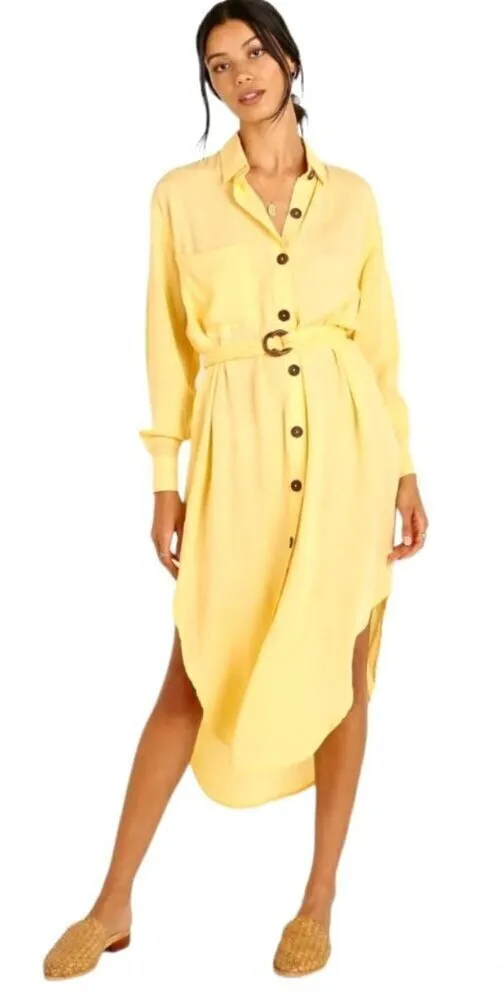 This Jen's Pirate Booty dress is a must-have for every woman's wardrobe. Made of linen and viscose, it features a solid yellow color that reflects the sunshine. The crinkle Ipanema shirt midi design adds a unique touch, making it perfect for any occasion. Can be the perfect cover-up as well! Features: • Collared • Oversized wooden button-down front • Long sleeves with button cuffs • Chest pocket • Side vents • Fall, Spring, Summer • Solid • Machine Wash • Shirt dress silhouette • Midi length • Linen, Viscose Measurements: armpit to armpit 20.5 in / 52 cm length front 45.5 in / 116 cm length back 48.5 in / 123 cm sleeve 22.5 in / 57 cm Flaw: Does not come with waist tie and the size tag is missing so please refer to measurements for sizing. All offers welcomed! ❤️ Professional seller, smoke free home and same or next day shipping. Like items for price drops. Receive the 30% off bundle discount when you purchase two or more items designer, luxury, retro, linen blend, vacation, travel, lightweight, beach, beachy, cover-up, coverup, shirt dress, midi, colorful, sunshine, bright, Retro, Designer, farmhouse, cottagecore, grandmacore, prairie, casual, classic, Trendy, stylish, preppy, chic, workwear, business, professional, holiday, Easter, church, Casual, Sunday, Professional, Business, Office, Workwear, Classy, Elegant, Classic, Modest, Brunch, Dinner, Modesty, Romantic, Feminine, Pretty, Corporate, Midi, wedding, party, designer, Retro, Linen, Collared,