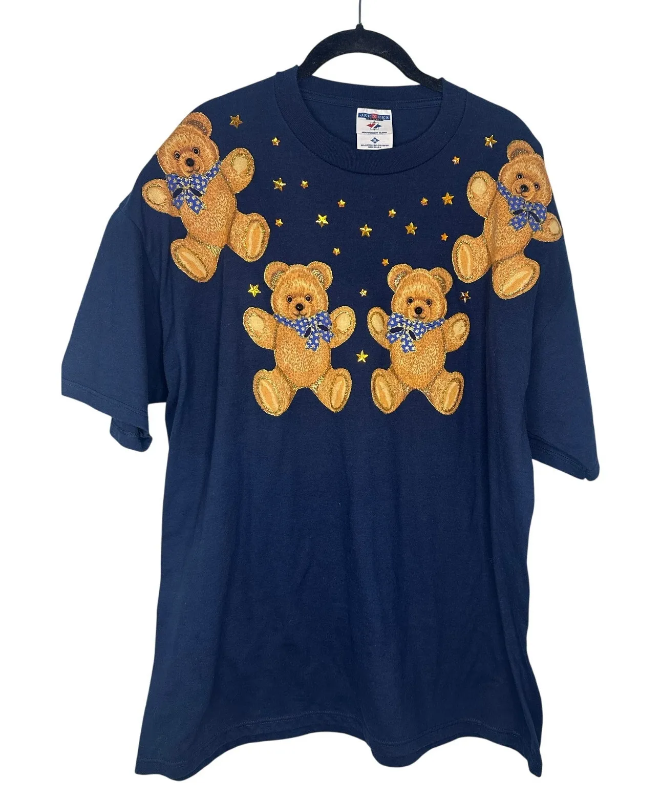 Jerzees Heavyweight T-Shirt Teddy Bear Vintage 90s Short Sleeve Size XL Navy Blue - $27 - From CatherIne