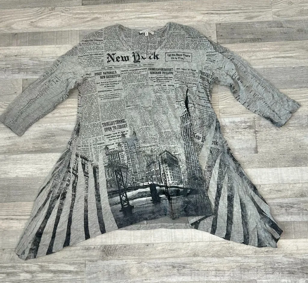 Jess & Jane Grey Mineral Wash New York Newsprint Tunic I42 Gray Size M - $28 - From Rebekah