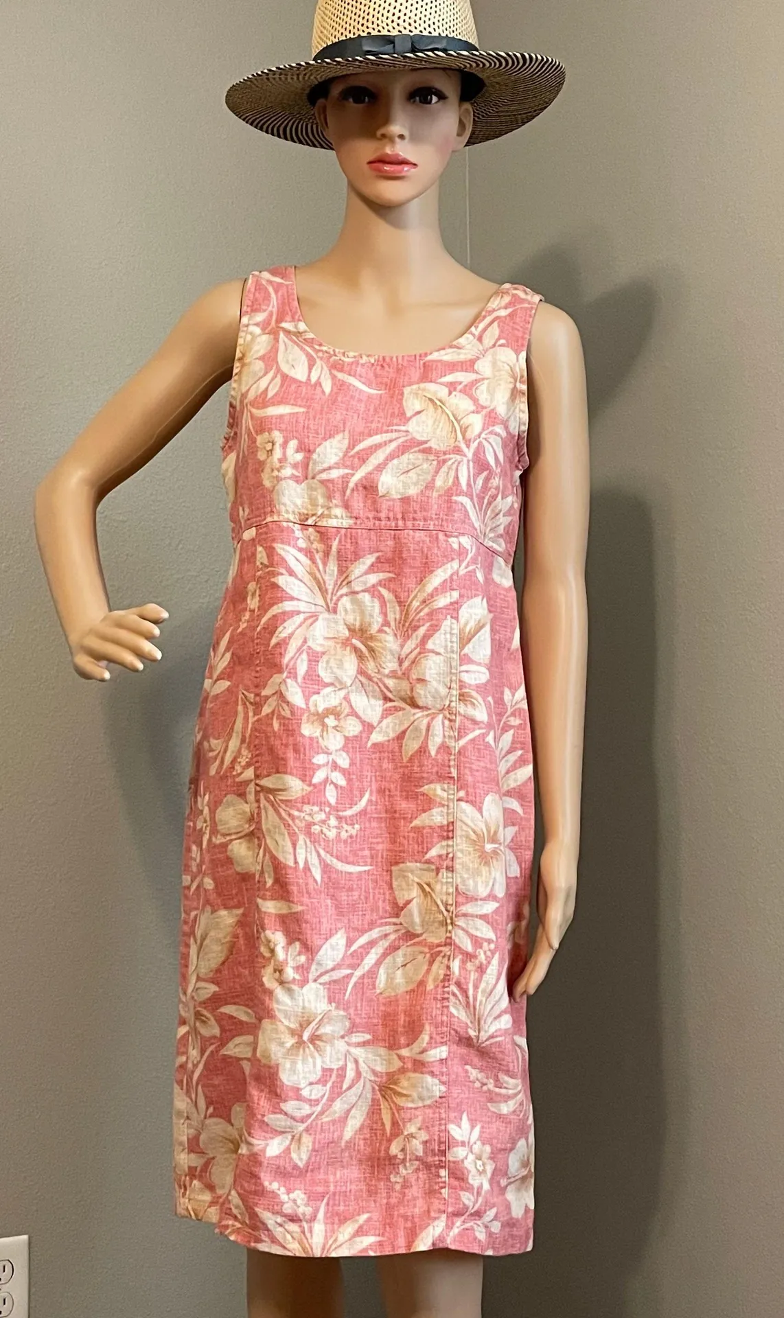 Jessica Howard Linen Pink and Cream Tropical Floral Dress Sleeveless Size Small 100% LINEN RN 70643 Excellent condition, buttoned at Top in the back, tag says 2 piece set however this listing is just one piece, Dress only Smoke free home measurements are in pictures and are approximate