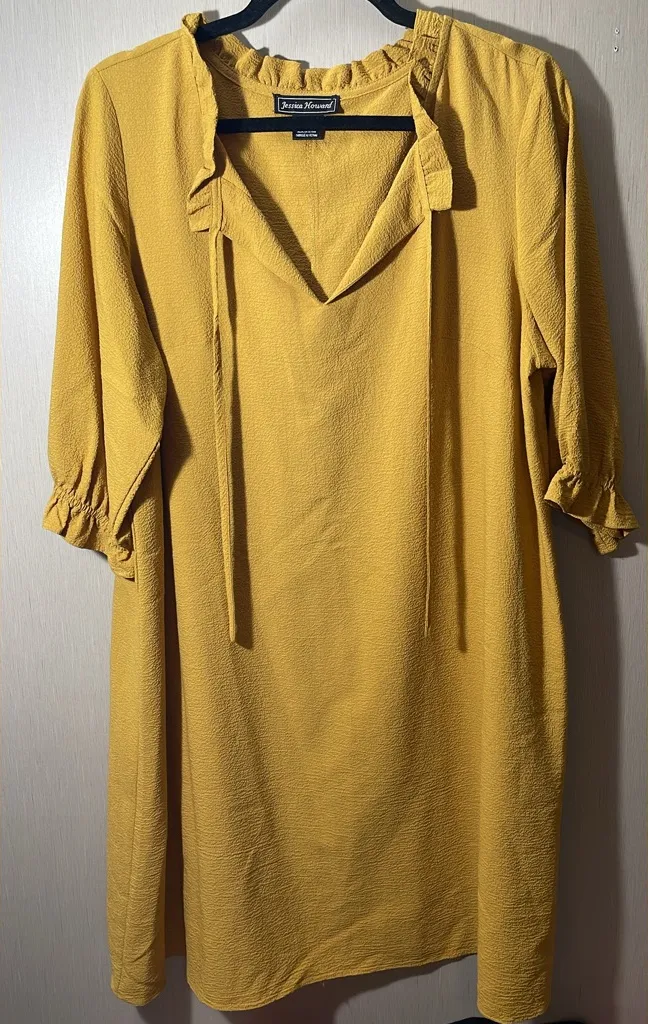 Jessica Howard textured v tie neck mustard gold yellow dress women’s plus 16 - $26 - From Angelica