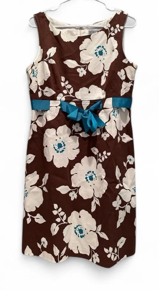 vintage jessica howard brown and white floral sleeveless dress size 12 blue tie at the waist, lined... Show more