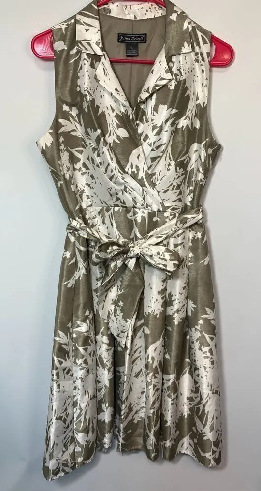 Jessica Howard Womens Collared Retro Floral Faux Wrap Dress Taupe White Size 6 Brand: Jessica Howard Department: Women's Style: Wrap Dress Size: 6 Color: Taupe/White Closure: Side Zipper Pattern: Floral Material: Shell:100% Polyester Lining: 100% Polyester Condition: Excellent used condition Measurements Length: 42" Chest: 18" Summer, Chic, Stylish, Party Weight: 14 oz See pictures for additional details Bundle 2 or more items for additional savings and pay only one shipping fee. Measurements are approximate and provided as a courtesy, not a guarantee of fit. Smoke free, pet free home. Actual colors may vary due to differences in lightings and computer monitors.