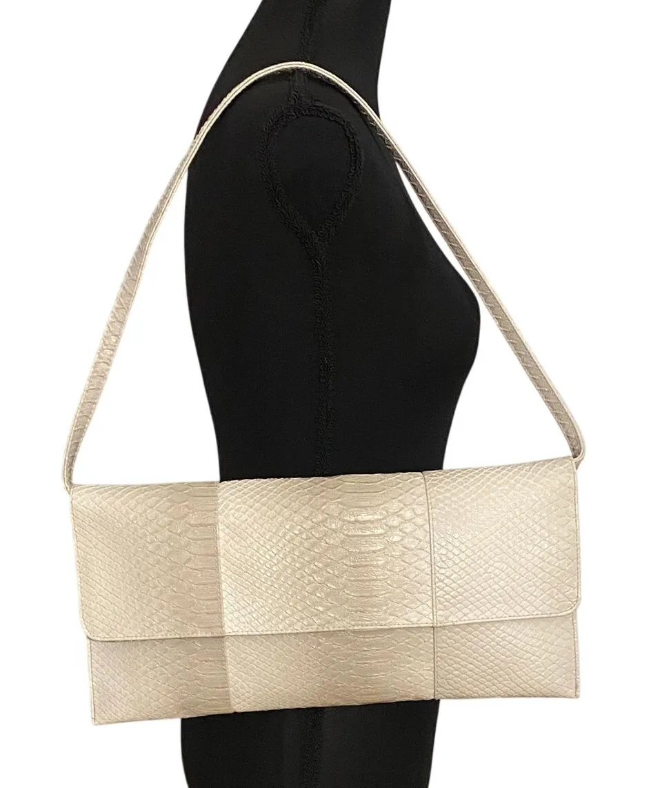 Jessica McClintock Ivory Faux Snakeskin East West Evening Clutch Shoulder Bag Elegant ivory faux sna... Show more