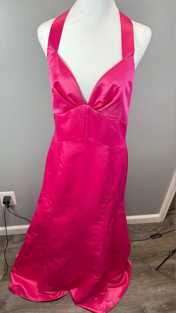 Jessica McClintock Vintage Gunne Sax Hot Pink Formal Maxi Dress Size 11/12 Deep V Neckline Criss C... Show more