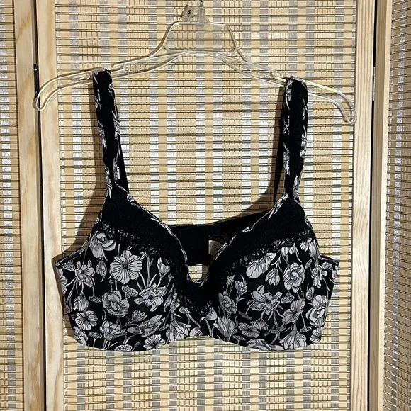 Jessica Simpson Black and white floral bra Black lace trim and sides Underwire cups Lightly lined Ad... Show more
