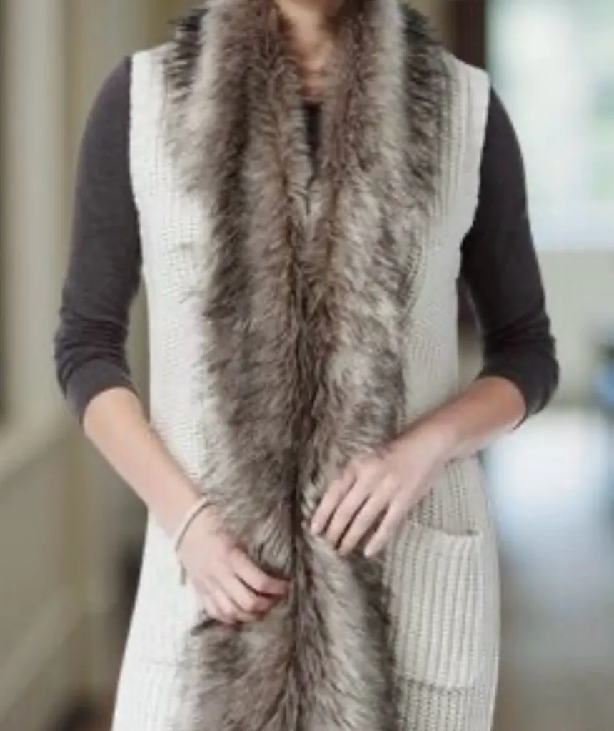 Jessica Simpson Cardigan Faux Fur Trim Knut Duster Open Front Beige XL Chic Glam ~ simply luscious... Show more
