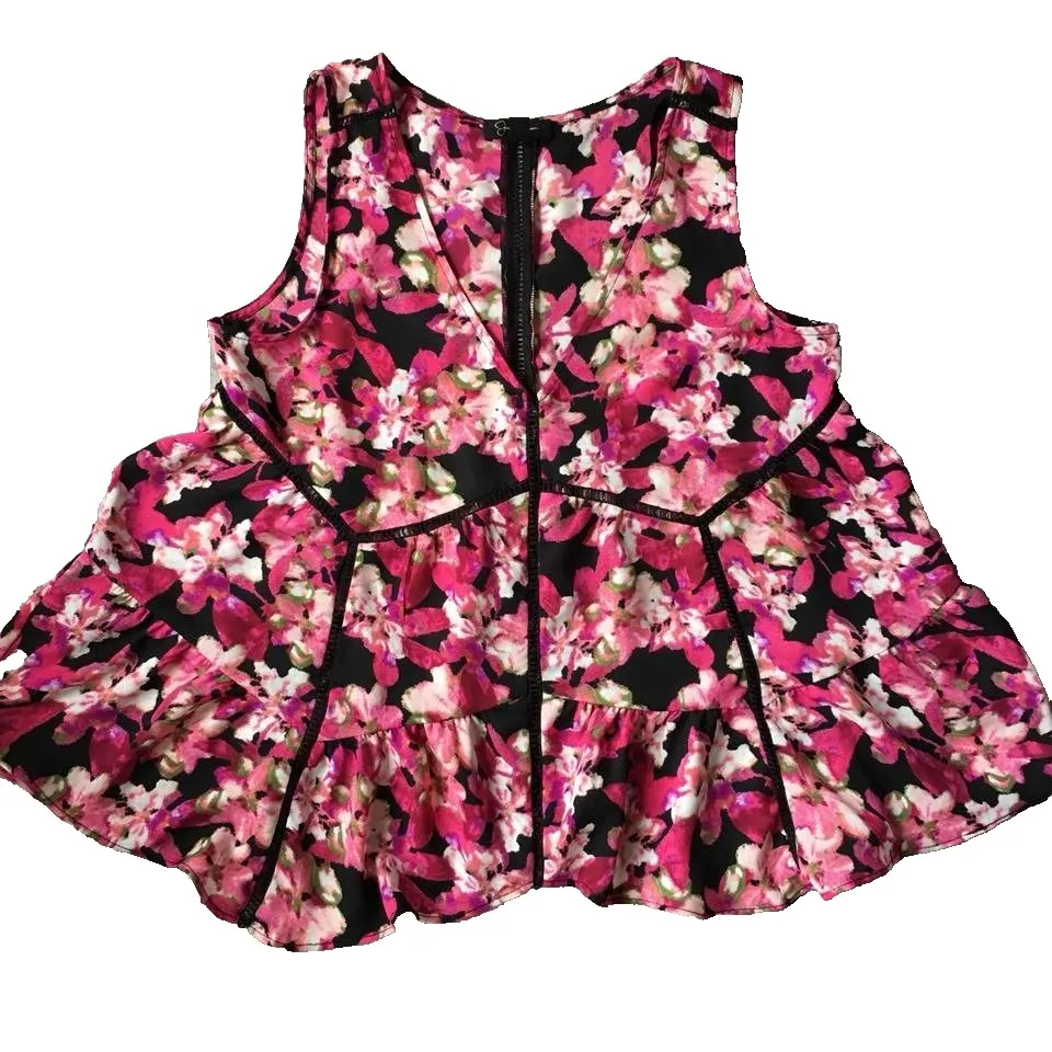Jessica Simpson Floral Top Women M 8 10 Pink Sleeveless Tank Boho Trapeze Swing Condition: Pre-owne... Show more