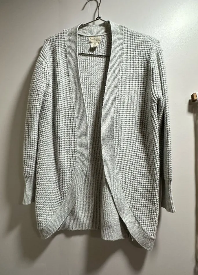 Elegant open-front cardigan. Soft knit texture. Perfect for layering.