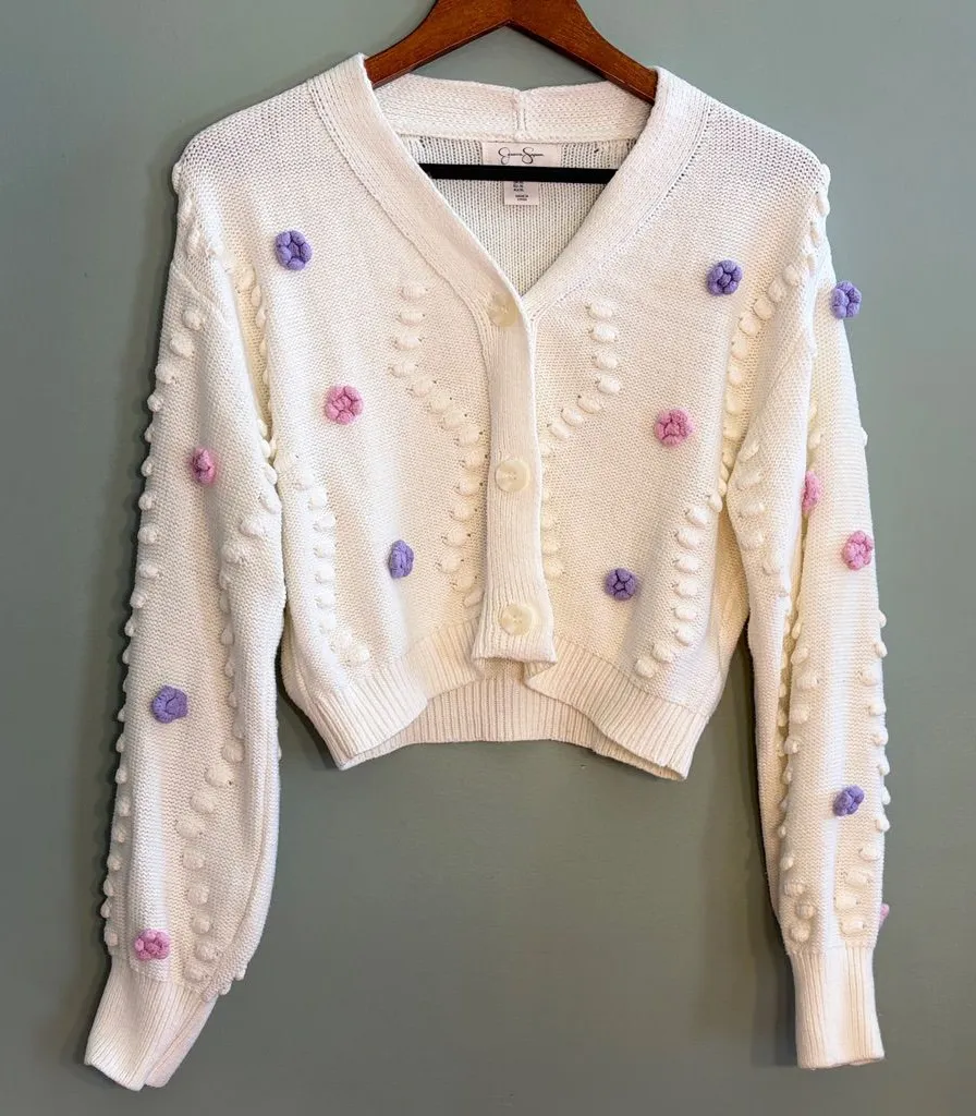 Jessica Simpson Size XL Cream Knit Embroidered Floral Cardigan Sweater GREAT CONDITION one discol... Show more