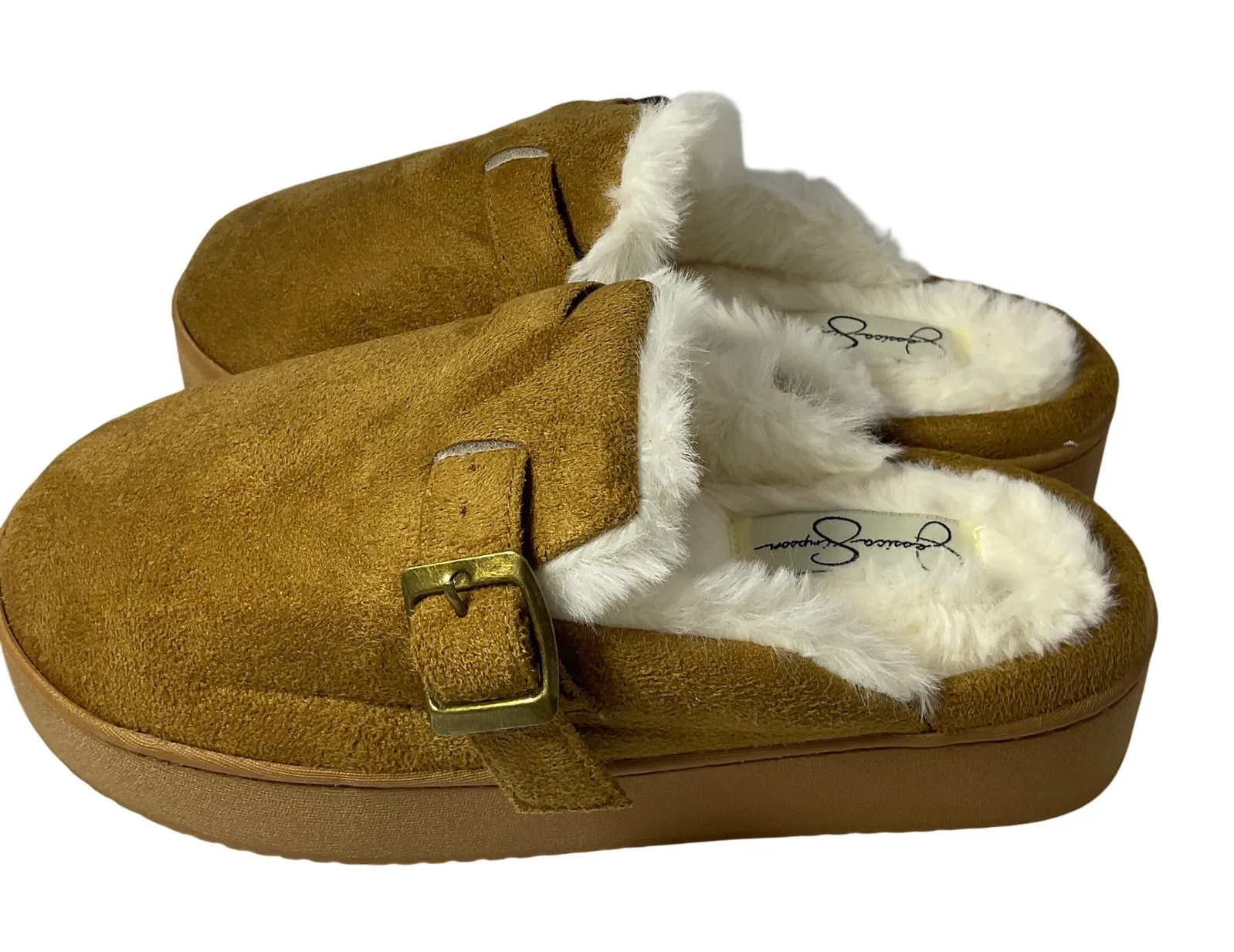 Wrap your feet in cozy comfort with these Jessica Simpson clog slippers. The rich tan suede exterio... Show more