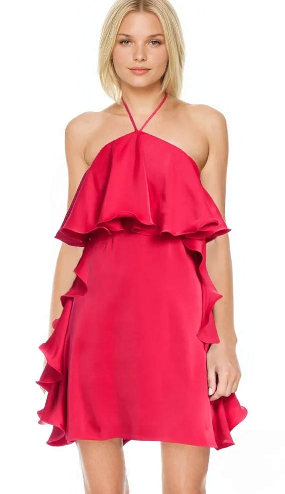 Jewel Badgley Mischka Amelia Ruffled Satin Mini Dress Deep Rose 10 Red - $125 New With Tags - From Nordic