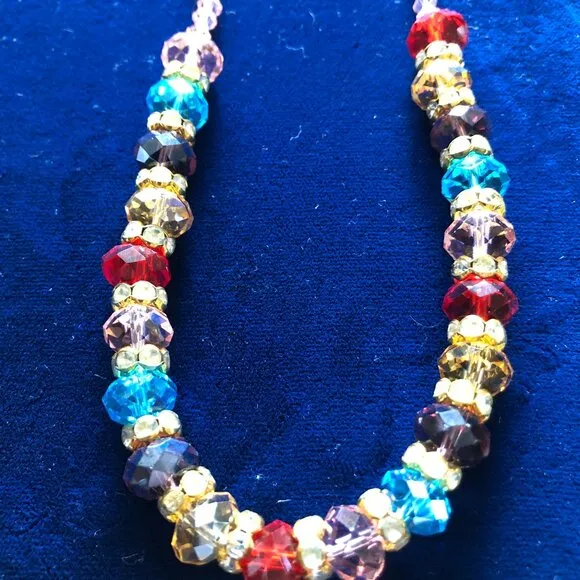 Add a pop of color to your outfit with this stunning jewelry set includes a Multi Color faceted glass beads with rondelles necklace and earrings, perfect for any occasion. The beaded design adds a touch of elegance to the piece. Make a statement with this beautiful necklace and complement it with the matching earrings. smoke free home