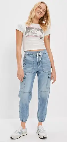 American Eagle Super High-Waisted Cargo Denim Jogger in color Ice Blue. Size: 0 Condition: New Wi... Show more