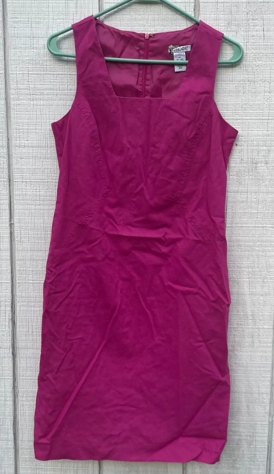 Linen/cotton blend polyester lining Pit to pit 17" Waist measured flat 15.5" Hips approx 18" Length 37.5" Slit in back 6" Style: Sheath, Shift, Pencil Dress, A-Line Dress Length: Knee Length Color: Purple Department: Women Sleeve Length: Sleeveless Pattern: Solid Occasion: Casual, Business, Workwear, Party/Cocktail Material: Linen Blend, Linen, Cotton, Polyester Neckline: Square Neck Character: Classic, Retro, Career, Elegant, Chic Keywords: dress, linen dress, fuchsia dress, sleeveless dress, square neck dress, casual dress, career dress, petite dress, size 4P, women's dress, vintage dress, retro dress, classic dress, sheath dress JJ-455