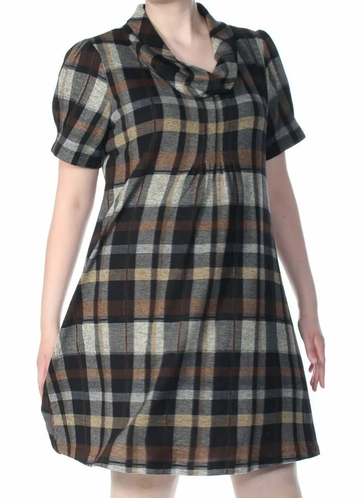 JH Black/Brown/Tan Plaid Bubble Sleeve Cowl Neck Short Sleeve Sweater Dress Brown Size XL - $25 - From Tiana