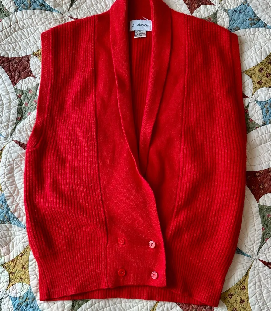 Red vintage 80s sleeveless angora and lambswool sweater vest. Brand JH Collectibles. Size M. Perfect condition, smoke free home. #luxury #80s #sweatervest #cottagecore #wool red, angora, lambswool, sweater vest, vintage, sleeveless, 80s, cropped, wool blend, retro