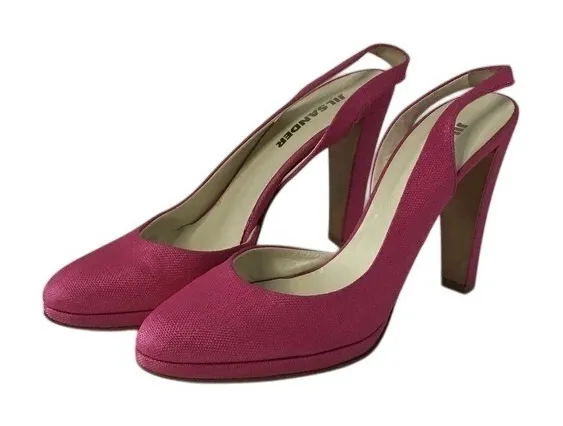 #mobwife #minimalist #lightacademia #retrovintage #costalgrandmother Elevate your footwear collection with these chic Jil Sander minimalist sandals, a seamless blend of contemporary design and timeless elegance. Crafted in Italy from supple goat leather in a soft pink hue, these slingbacks offer an understated sophistication that complements any ensemble. The adjustable strap and almond toe ensure a comfortable fit, while the low heel provides a subtle lift perfect for spring and summer outings. The sandals feature a durable leather outsole, a calf leather insole, and a breathable canvas lining, making them ideal for those who value both style and comfort. With their solid pattern and designer, vintage appeal, these shoes are versatile enough for a variety of looks, whether you're aiming for a casual day out or a more polished, celebrity-inspired ensemble.