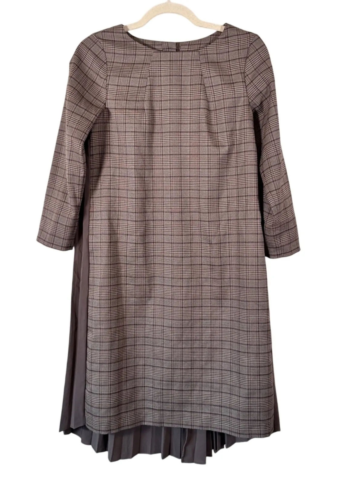 Jill Stuart Brown Plaid Mini Shift Dress Womens S Preppy Pleated Back Academia Tan - $65 - From Lisa