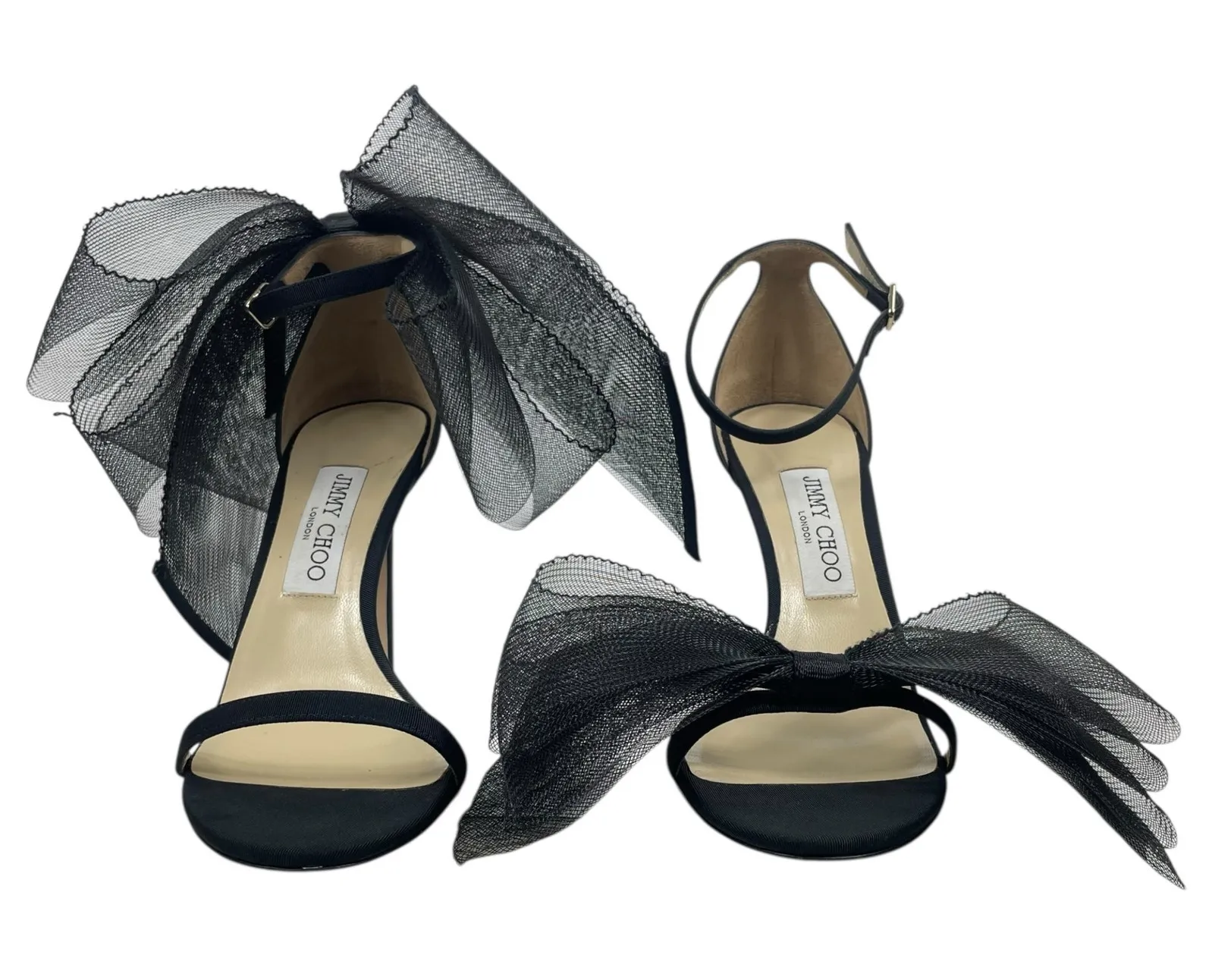 Jimmy Choo Aveline 100 Black Sandal Grosgrain Mesh Fasincator Bow Brand: Jimmy Choo Size: EU 39/ U... Show more