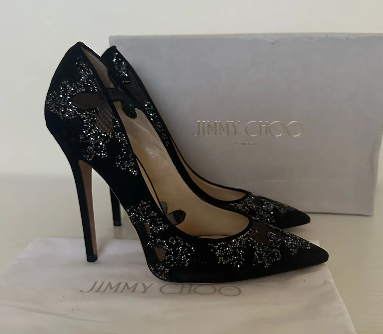 Jimmy Choo Karnak Crystal Rock Embellished Mesh Suede Pumps 120mm size 40 / US 9 Black - $400 (60% Off Retail) - From Natalia